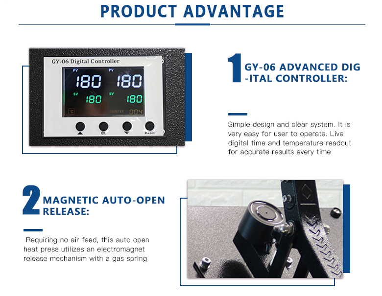La máquina de prensa de calor de alta presión de la serie AHP es famoso por su diseño deslizable y de apertura automática. La función de apertura automática ahorra tiempo y esfuerzo, permitiendo al operador aplicar más transferencias en comparación con la prensa de calor manual tradicional. Esta prensa de calor por sublimación brinda mayor productividad en la sublimación.
